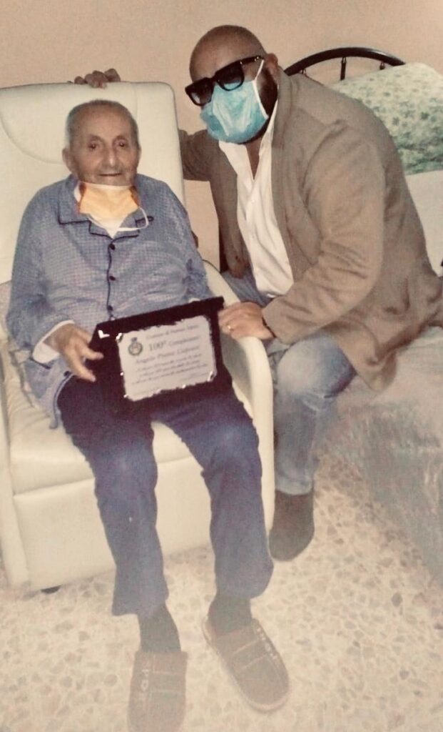 A chi per 100 anni ha vissuto la storia, a chi per 100 anni ha fatto la storia, a chi con la sua storia ha testimoniato la vita”. Recitano così la targa ricordo consegnata ieri dal Sindaco Giuseppe Lombardi ad Angelo Capozzi, nativo di Petruro Irpino, che il giorno 21 maggio ha festeggiato il suo centesimo compleanno. Con qualche giorno di ritardo, anche in osservanza delle misure di sicurezza sanitaria per il Covid 19 e per tutelare nonno Angelo, il primo cittadino di Petruro ha voluto omaggiare una figura storica del piccolo borgo irpino seppure trasferitosi nella vicina Benevento dal lontano 1955 per ampliare la sua attività commerciale già florida nel piccolo borgo irpino.