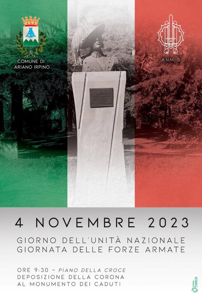 L’Amministrazione Comunale di Ariano Irpino, in una sobria e solenne cerimonia, vuole commemorare i Caduti di tutte le Guerre, rendere omaggio alle Forze Armate, celebrando la Festa dell’Unità Nazionale.