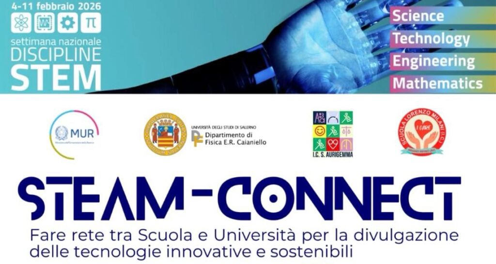 In Irpinia l’orientamento scolastico si fa sempre più concreto e efficace, grazie ad una sinergia tra istituti del territorio che punta a offrire ai più giovani occasioni reali di scoperta e crescita. È in questo spirito che nasce la giornata formativa che porterà gli studenti dell’Istituto Comprensivo “S. Aurigemma” di Monteforte Irpino e dell’Istituto “Calvario–Covotta” di Ariano Irpino all’Università degli Studi di Salerno, locus di formazione in cui potranno immergersi nel mondo della scienza e delle tecnologie più avanzate. Gli alunni, infatti, saranno coinvolti nel progetto “STEAM-COnNEcT. Fare rete tra Scuola e Università per la divulgazione delle tecnologie innovative e sostenibili”