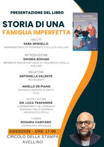 Il 4 marzo, alle 17:00, il Circolo della Stampa di Avellino ospiterà la presentazione del nuovo libro di Luca Trapanese, “Storia di una famiglia imperfetta”, pubblicato da Salani Editore. Un appuntamento culturale atteso, che porterà in città una delle voci più sensibili e ascoltate sul tema della genitorialità, dell’inclusione e dei diritti civili.