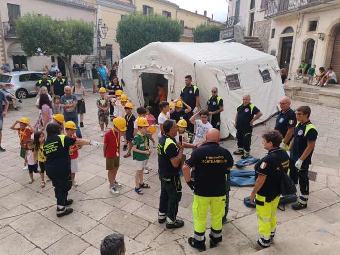 Un pomeriggio molto intenso e ricco di attività per i bambini (e non solo) a Bisaccia. L’occasione è stato il Protezione Civile Day, ovvero l’evento che ricorda il compleanno del Gruppo Comunale Volontari Protezione Civile di Bisaccia. In questa edizione i Volontari della Protezione Civile di Bisaccia hanno avuto il piacere e l’onore di avere come ospite l’INGV di Grottaminarda, i Volontari della Protezione Civile di Pontelandolfo e il dott. Felice Preziosi. Ad aprire la manifestazione le belle parole del nostro parroco Don Rino Morra, a seguire i saluti istituzionali del consigliere comunale con delega alla Protezione Civile Beniamino Macina. L’INGV con il dott. Geologo Luigi Zarrilli e la dottoressa Stefania Pucillo hanno portato in piazza un interessante percorso didattico sul terremoto, riscontrando grande attenzione dei presenti. A seguire i Mini volontari sono stati impegnati nel montaggio della tenda pneumatica in dotazione al Gruppo Comunale di Bisaccia. I piccoli hanno potuto vedere da vicino cosa è una tenda, completa di luci e brandine e capire la sua utilità in caso di emergenze. Poi ai piccoli è stata impartita una piccola lezione sul corretto uso delle radio. Queste nozioni le hanno subito messe in campo in una ricerca di oggetti dispersi, facendo