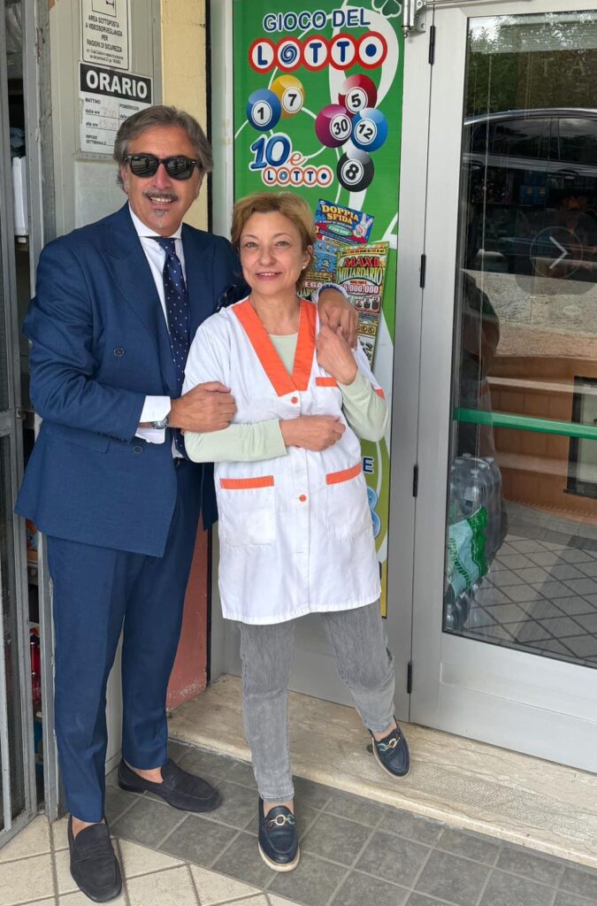 “Tornando dal Tribunale, ho voluto fare subito una foto con Paola per festeggiare i 50.000 euro vinti nel suo negozio di alimentari a Cassano”, ha scritto il primo cittadino su Facebook, condividendo l’entusiasmo di tutta la comunità.
