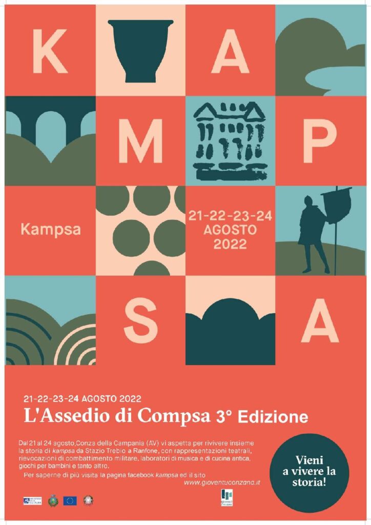 A seguire il 23-24 agosto 2022, sarà la volta dei rievocatori dell’associazione Benevento Longobarda coordinati dal prof. Alessandro Fragnito che allestiranno l’accampamento militare nella Villa Comunale di Conza e daranno vita a una serie di attività dai laboratori didattici, ai giochi antichi per bambini fino ad arrivare alla messa in scena della battaglia campale in p.zza Sandro Pertini alle ore 21.00 che sicuramente rappresenta il momento rievocativo più dinamico e coinvolgente della manifestazione. Ringrazio personalmente anche l’associazione Teatranti del Sipario di Calitri e il loro presidente Vito Tateo per il supporto tecnico nell’organizzazione della manifestazione, sperando che questo sia il primo passo verso l’obiettivo di creare una rete tra i Comuni in grado di valorizzare sotto il profilo turistico tutta l’Alta Irpinia. Pertanto invitiamo tutti a consultare il programma degli eventi presente sulla pagina facebook “KAMPSA” e di “venire a vivere la storia” a Conza della Campania.
