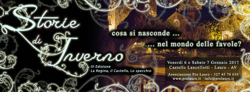 L’Associazione Culturale Ricreativa Pro Lauro promuove la terza edizione di “Storie di Inverno”. Visita guidata notturna nel Castello Lancellotti, nei giorni di venerdì 6 e sabato 7 Gennaio 2017, alla scoperta di una magia che farà rivivere agli spettatori le antiche favole…