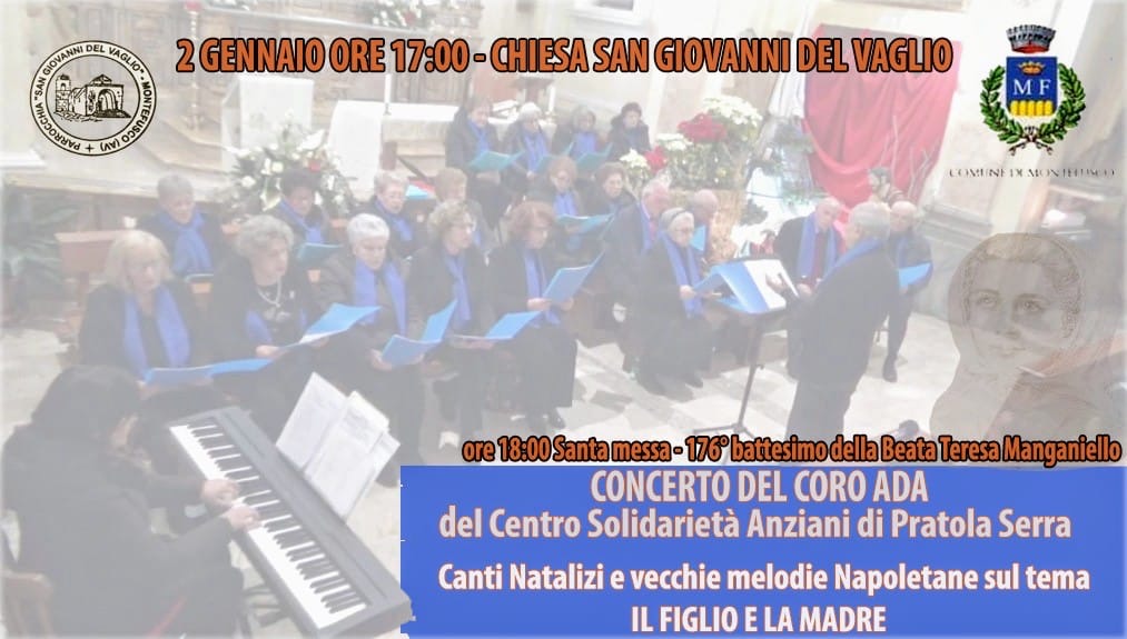 Ad aprire la giornata, alle ore 17:00, ci sarà il concerto del Coro ADA del Centro Solidarietà Anziani di Pratola Serra che proporrà un repertorio di canti natalizi e melodie napoletane, richiamando l’antica tradizione musicale della nostra terra. Il tema del concerto, “Il Figlio e la Madre”, farà da filo conduttore alla performance creando un’atmosfera di grande comunione.