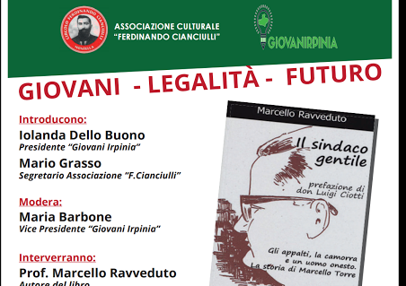 Si terrà il prossimo 1 aprile 2017, alle ore 17.30, presso la sala convegni Villa E&C De Marco di Montella, il convegno “Giovani – Legalità – Futuro”, promosso dall’Associazione Culturale “F.Cianciulli” e dall’associazione GiovanIrpinia in virtu’ della giornata della memoria del 21 marzo.