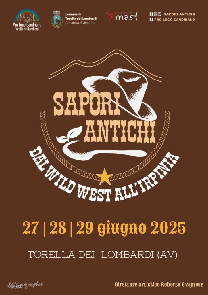 Il fascino del mondo western incontra la cultura, i sapori e le tradizioni dell’Irpinia. Da venerdì 27 a domenica 29 giugno 2025, il borgo di Torella dei Lombardi (AV), terra d’origine di Sergio Leone, si trasformerà in un autentico villaggio western per accogliere una delle manifestazioni più attese dell’estate: “Sapori Antichi: dal Wild West all’Irpinia”.