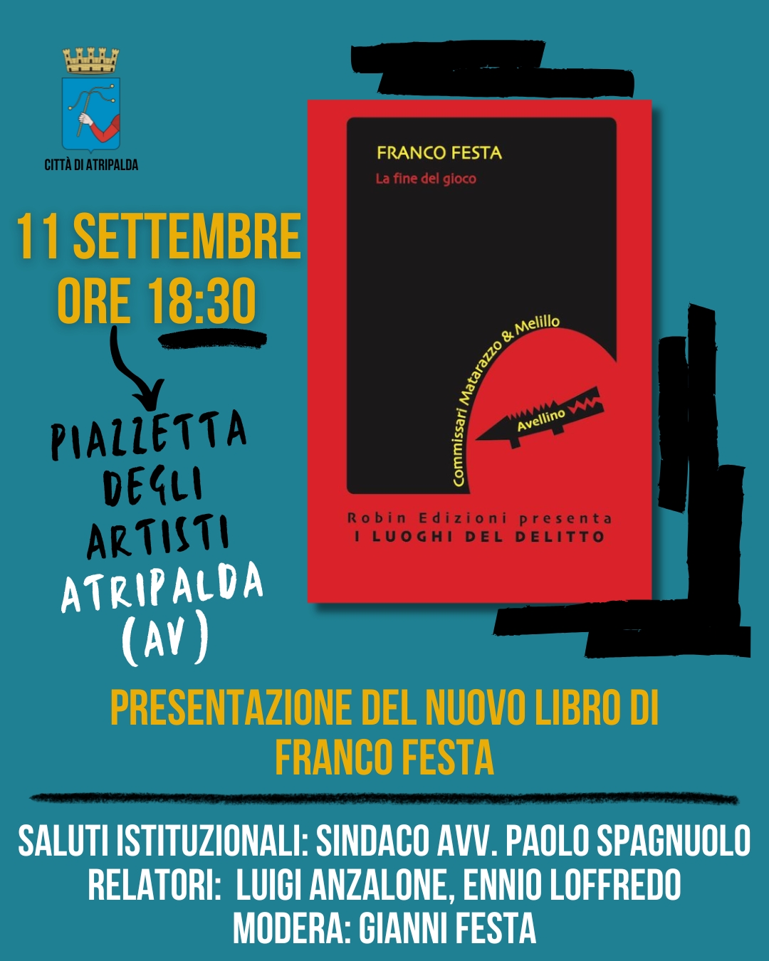 L’appuntamento rappresenta un’occasione significativa per la città: Franco Festa, autore apprezzato e tra le voci più originali della narrativa gialla e noir ambientata in Irpinia, torna a proporre un intreccio avvincente con protagonisti i commissari Matarazzo e Melillo.