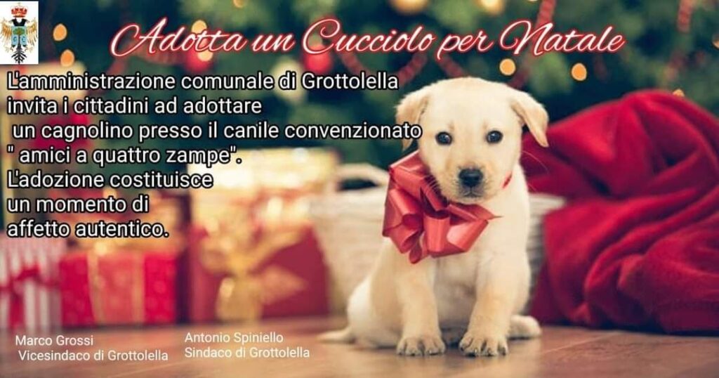 Per il secondo anno consecutivo il Comune di Grottolella e segnatamente il settore Veterinario e Protezione Civile, ripropone l’iniziativa “Adotta un cucciolo per Natale”.