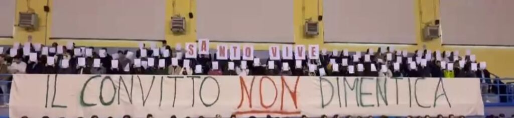 AVELLINO- Non una semplice assemblea, ma un momento per condividere una riflessione profonda…È quello che hanno voluto regalare ai loro compagni di scuola i due Rappresentanti d’Istituto, Francesco Sessa e Francesco Pagano, oggi, per l’assemblea di Febbraio dei due Licei del Convitto; hanno voluto accogliere nel loro caldo abbraccio la signora Mena De Mare, madre di Santo Romano, il giovane portiere, promessa del calcio, ucciso nei mesi scorsi a San Sebastiano al Vesuvio, mentre tentava di fare da paciere in una lite tra coetanei, per un paio di scarpe sporcate con un pestone. Un grande striscione, approntato ad hoc, con la scritta “Il Convitto non dimentica”, tutti seduti in religioso silenzio sugli spalti della Palestra d’Istituto, gli alunni dei due Licei, Classico e Classico Europeo, i Docenti e il Rettore, Dirigente Scolastico, Prof. Attilio Lieto, che dal primo momento ha accolto con entusiasmo e approvazione la proposta dei due giovani Rappresentanti. Tutti insieme hanno ricordato Santo, morto per violenza, ucciso da una “cultura che arma le mani”, come hanno scritto i ragazzi in una toccante lettera, “di chi vede nella sopraffazione uno strumento di potere”. Gli studenti hanno voluto alzare un grido contro la violenza, contro l’abitudine di voltarsi dall’altra parte, “perché in un paese civile, a 19 anni, si dovrebbe costruire il futuro, non temere di perderlo”. La signora Mena oggi è stata “un dono prezioso”, ha sottolineato il Rettore Lieto, nel discorso di accoglienza e la coreografia, messa a punto dagli stessi alunni, ha espresso lo stesso concetto.