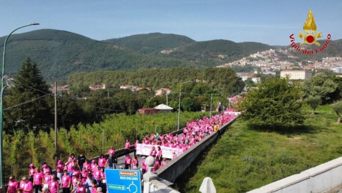 È partita oggi la 10° edizione della Camminata Rosa, l’iniziativa dedicata alla prevenzione contro il cancro al seno. Come da tradizione, la marcia ha preso il via da Viale San Modestino a Mercogliano, attraversando le strade di Avellino per concludersi alla chiesa di Rione Mazzini, dove è stato allestito il gigantesco Giglio di Nola.
