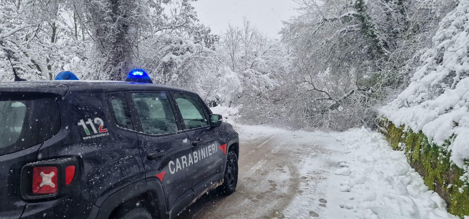 Poco fa, una pattuglia della locale Stazione Carabinieri, corso servizio di perlustrazione e controllo della viabilità, ha riscontrato che lungo quella Sp. 129 la caduta di alcuni alberi,appesantiti dalla neve, ne aveva ostruito il passaggio.