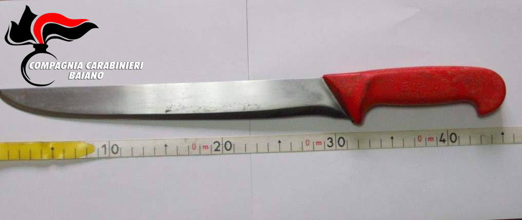 I militari, durante un normale controllo alla circolazione stradale, notavano una strana agitazione nell’uomo fermato in Avella, alla guida di un’autovettura. L’intuizione che quella persona, già nota alle Forze dell’Ordine, celasse qualche segreto potenzialmente sospetto trovava immediata conferma nella perquisizione che i Carabinieri decidevano senza indugio di eseguire. Infatti, occultato sotto il sedile anteriore, veniva rinvenuto un coltello da macellaio avente una lunghezza di 45 cm.
