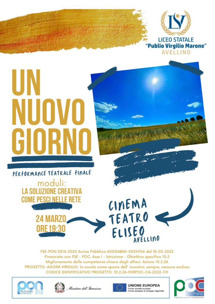 Venerdì prossimo 24 marzo, alle ore 19:30, lo storico Cinema Eliseo apre i battenti alla rappresentazione teatrale delle studentesse e degli studenti del Liceo “Publio Virgilio Marone” intitolata “Un nuovo giorno…”.