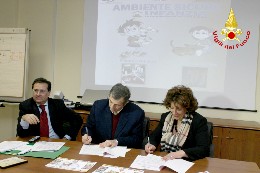 Presso i locali del Comando Provinciale di Avellino, si è svolta la conferenza stampa per la presentazione del progetto “Ambiente Sicuro Infanzia”. Hanno partecipato il Comandante Provinciale Ing. Alessio Barbarulo la dirigente dell’Ufficio Scolastico Regionale per la Campania – Ambito Territoriale di Avellino Dott.ssa Rosa Grano. Il progetto, voluto in ambito nazionale, è rivolto a bambini di fascia d’età compresa tra i 3 e i 6 anni e alle loro famiglie, affronta il delicato tema degli incidenti domestici e delle potenziali fonti di pericolo presenti all’interno delle nostre abitazioni. L’obiettivo è quello di raggiungere, nell’arco del triennio 2011/2013, il 30% dei bambini iscritti nelle scuole dell’infanzia con il target fissato per l’anno in corso del 10%. Nella nostra provincia il 30% corrisponde a 2858 bambini e il 10% (del 30%) corrisponde a 286 bambini e approssimativamente 13 classi (sulla base dei dati forniti dal Ministero dell’Istruzione, dell’Università e della Ricerca – MIUR). Il progetto è supportato da un DVD con otto racconti a disegni animati, da album da colorare, da adesivi dei personaggi dei racconti da regalare ai bambini e da un questionario di gradimento per il corpo docente. Tale materiale è stato realizzato dal comitato scientifico “SICURINSIEME” composto da: Esperti operatori del soccorso; Personale del Corpo Nazionale dei Vigili del Fuoco impegnato da tempo nella divulgazione della “cultura” della sicurezza presso le scuole e le altre comunità con all’attivo incontri di circa 4000 studenti l’anno; Medici pediatri della Divisione Pediatrica d’Urgenza dell’Istituto Scientifico “Giannina Gaslini” di Genova; Personale docente delle scuole dell’infanzia del Comune di Genova; Milena Lanzetta, insegnante di scuola dell’infanzia del Comune di Genova, formatrice insegnanti della scuola dell’infanzia con corsi sulla storia della letteratura infantile e delle origini della fiaba e laboratori sulla lettura; Dott.ssa Debora Infantino, responsabile del Centro Psicopedagogico “La Bussola” operante da diversi anni con progetti nelle scuole dell’infanzia, primarie e secondarie. Le scuole individuate per il progetto nel corrente anno sono le seguenti: I° Circolo Didattico di Avellino 56 alunni (2 classi); V° Circolo Didattico di Avellino 43 alunni (2 classi); VI° Circolo Didattico di Avellino 47 alunni (2 classi) ; Direzione Didattica di Atripalda 53 alunni (2 classi); Istituto Comprensivo “F. Tedesco” di Avellino 35 alunni (2 classi); Istituto Comprensivo “ S. Tommaso” di Avellino 46 alunni (2 classi) ; Gli incontri nelle scuole si concluderanno entro il mese di giugno del corrente anno. Al fine di garantire una idonea programmazione degli interventi nelle scuole e un corretto approccio con il corpo docente dei vari istituti coinvolti, è stato firmato un protocollo d’intesa tra il Comando Provinciale Vigili del Fuoco di Avellino e l’Ufficio Scolastico Regionale – Ambito territoriale di Avellino.