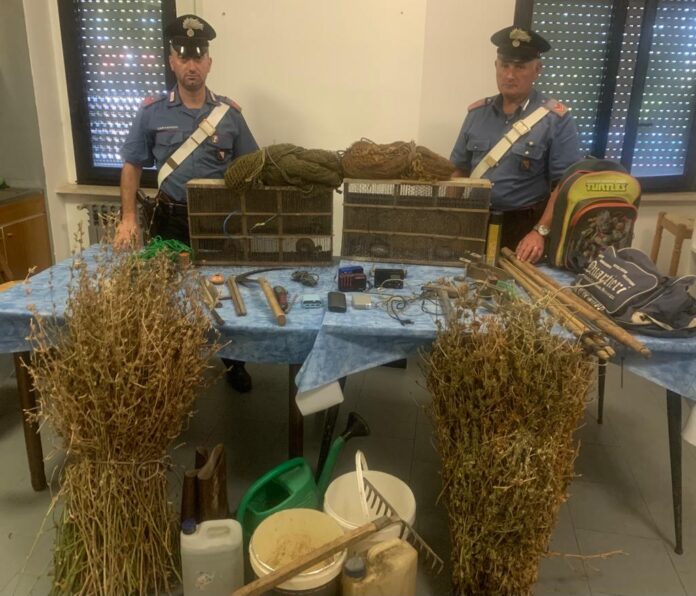 I militari, insospettitisi dall’atteggiamento assunto dal conducente alla loro vista, intimavano l’alt al veicolo e procedevano al controllo. A seguito di perquisizione veicolare, rinvenivano all’interno del bagagliaio n. 6 cardellini rinchiusi in apposite gabbiette, oltre a fili, trappole, falci, aste in legno per fissaggio di reti per la cattura di uccelli ed altro materiale usato nell’illegale pratica dell’uccellagione che consiste nel prelevare in natura specie di fauna volatile protetta.