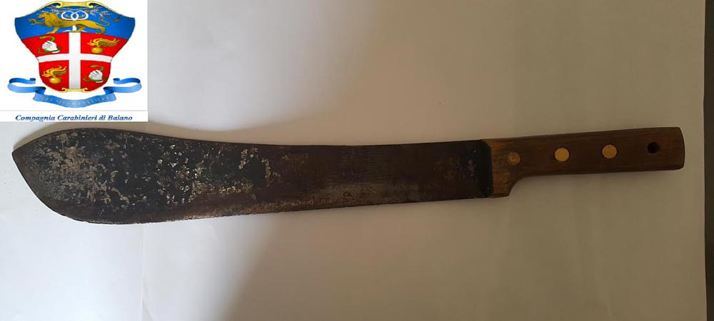 Giunti sul posto, i militari procedevano a bloccare un pregiudicato mugnanese, già noto alle forze dell’ordine per la sua indole violenta, che, alla vista dei Carabinieri, tentava di liberarsi di una “mannaia” della lunghezza di circa 50 cm di lama, con la quale, per futili motivi, aveva appena colpito un giovane 30enne di Avella, che riverso a terra e in stato di choc, presentava una profonda ferita sanguinante, da taglio, al centro della fronte e allo zigomo sinistro.
