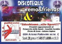 Ariano Irpino – Fine settimana ricco ad Ariano Irpino per gli appassionati sia di sport che di musica. Sabato pomeriggio alle ore 18 al Palazzetto dello Sport di rione Cardito incontro del G.S.A. Pallavolo Ariano contro l’Ars et Labor di Baiano. Ma la dirigenza del G.S.A. Ariano ha anche abbracciato la musica, come ulteriore dimostrazione di essere vicino ai giovani. Con un ulteriore sforzo i tecnici e il settore comunicazione hanno affiancato le iniziative di Remo&Friends, che si prodigano per far ritrovare i ragazzi in ambienti piacevoli e confortevoli. Sabato è la volta di una serata anni ’80 e ’90. Allora tanta buona musica, vicina ai principi sani dello Sport ad Ariano Irpino, per un connubio che produca in futuro tante nuove ed energetiche iniziative.