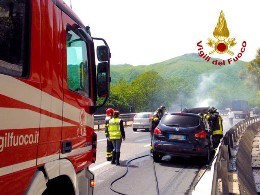 Avellino – Vigili del Fuoco al lavoro poco dopo le ore 13 sull’A/16 Napoli Bari al KM 37, in direzione Napoli, nel territorio del comune di Monteforte Irpino, subito prima della galleria, per un incendio che ha interessato un’autovettura Nissan Qashqai, guidata da un uomo. L’autista del mezzo durante la marcia ha visto fuoriuscire delle fiamme dal vano motore e ha fatto in tempo ad abbandonare il veicolo, senza nessuna conseguenza, tranne un grosso spavento. Grazie al tempestivo intervento della squadra, proveniente dalla centrale di contrada Quattrograna, si è provveduto allo spegnimento del veicolo, riuscendo a limitarne i danni.