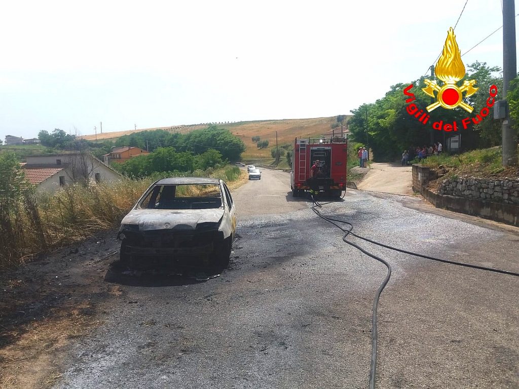 Auto in transito prende improvvisamente fuoco: paura a Montecalvo