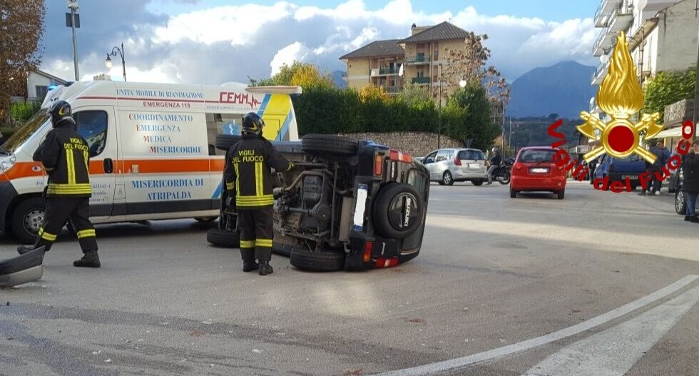 Auto si ribalta alla rotonda di Atripalda, tre i feriti