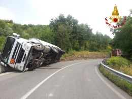 i Vigili del Fuoco del distaccamento di Grottaminarda sono dovuti intervenire a Frigento, sulla strada Statale 303, dove un’autocisterna che trasportava gasolio e benzina, in una curva si è ribaltata. La squadra di Grottaminarda è stata seguita da una proveniente dalla sede centrale di Avellino, con l’autogrù, e dal nucleo N.B.C.R., visto che si trattava di sostanze pericolose. Messo in sicurezza il pesante automezzo, dopo aver effettuato il travaso del liquido, si è provveduto al recupero del veicolo, riportandolo in carreggiata. per fortuna nessuna conseguenza per l’autista.