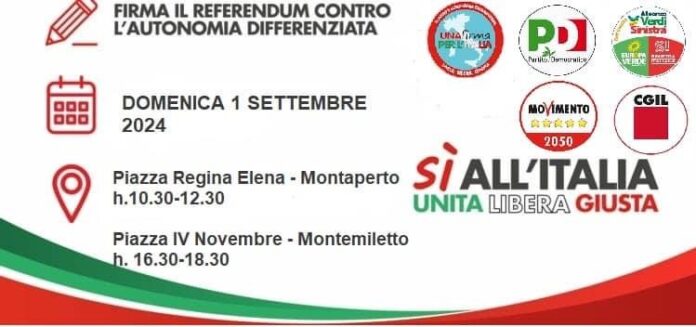 Il Comitato referendario costituito dalle varie forze politiche, dice Sì all’Italia Unita con la raccolta firme, tutto questo per tutelare i diritti e le libertà costituzionali.
