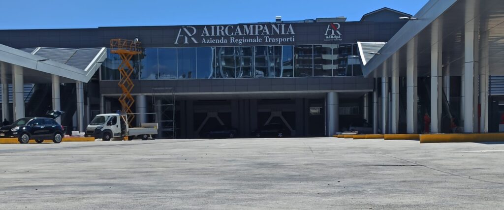 Si stanno effettuando gli ultimi ritocchi e, proprio in queste ore, è stata collocata la grande scritta con il logo dell’Air Campania, fissata a caratteri cubitali sulla facciata della struttura di via Pini.