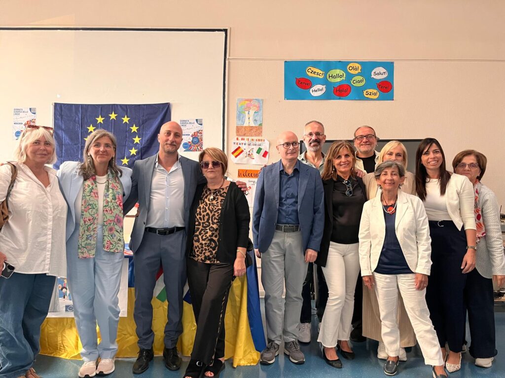 Una festa di suoni, parole e culture ha animato questa mattina l’Istituto Comprensivo “R. Margherita – da Vinci”, che ha accolto una rappresentanza di studentesse e studenti del Liceo Linguistico “P. Imbriani” per celebrare insieme il 25º anniversario della Giornata Europea delle Lingue, istituita dal Consiglio d’Europa nel 2001 per promuovere il multilinguismo e il dialogo interculturale. La manifestazione, che ha coinvolto alunni, docenti e dirigenti, ha visto la partecipazione del dirigente dell’I.C. R. Margherita – da Vinci, prof. Vincenzo Bruno, e del dirigente del Liceo Imbriani, prof. Sergio Siciliano, che hanno sottolineato l’importanza di questo traguardo: un quarto di secolo in cui le lingue hanno continuato a rappresentare strumenti di pace, inclusione e crescita.