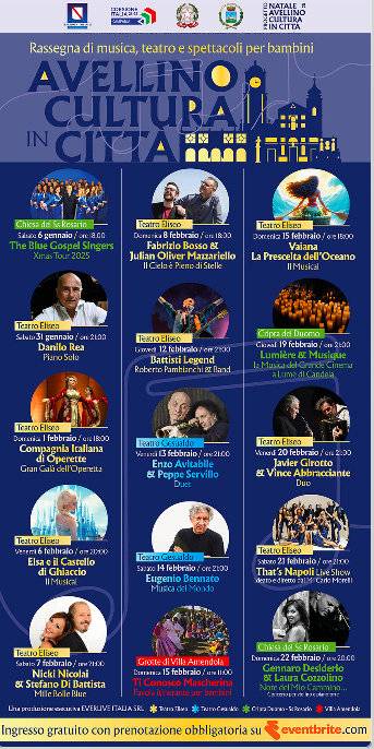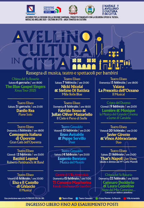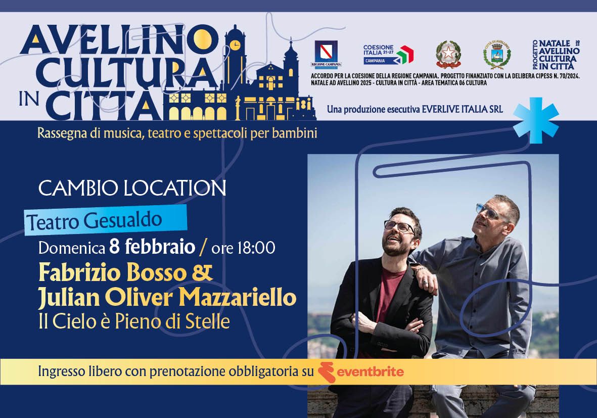 A seguito del via libera della Regione Campania, gli eventi del 7 ed 8 febbraio,  inizialmente programmati presso il Teatro Eliseo si svolgeranno al Teatro “Carlo Gesualdo” di Avellino.