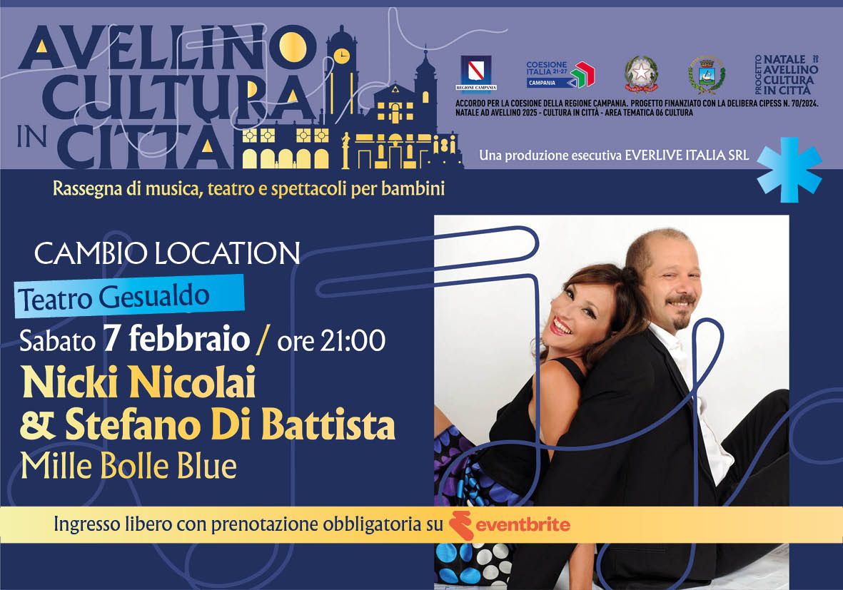 Cambio di location per due appuntamenti della rassegna organizzata dal Comune di Avellino attraverso la produzione esecutiva di Everlive Italia srl, “Avellino Cultura in Città – Rassegna di musica, teatro e spettacoli per bambini”.