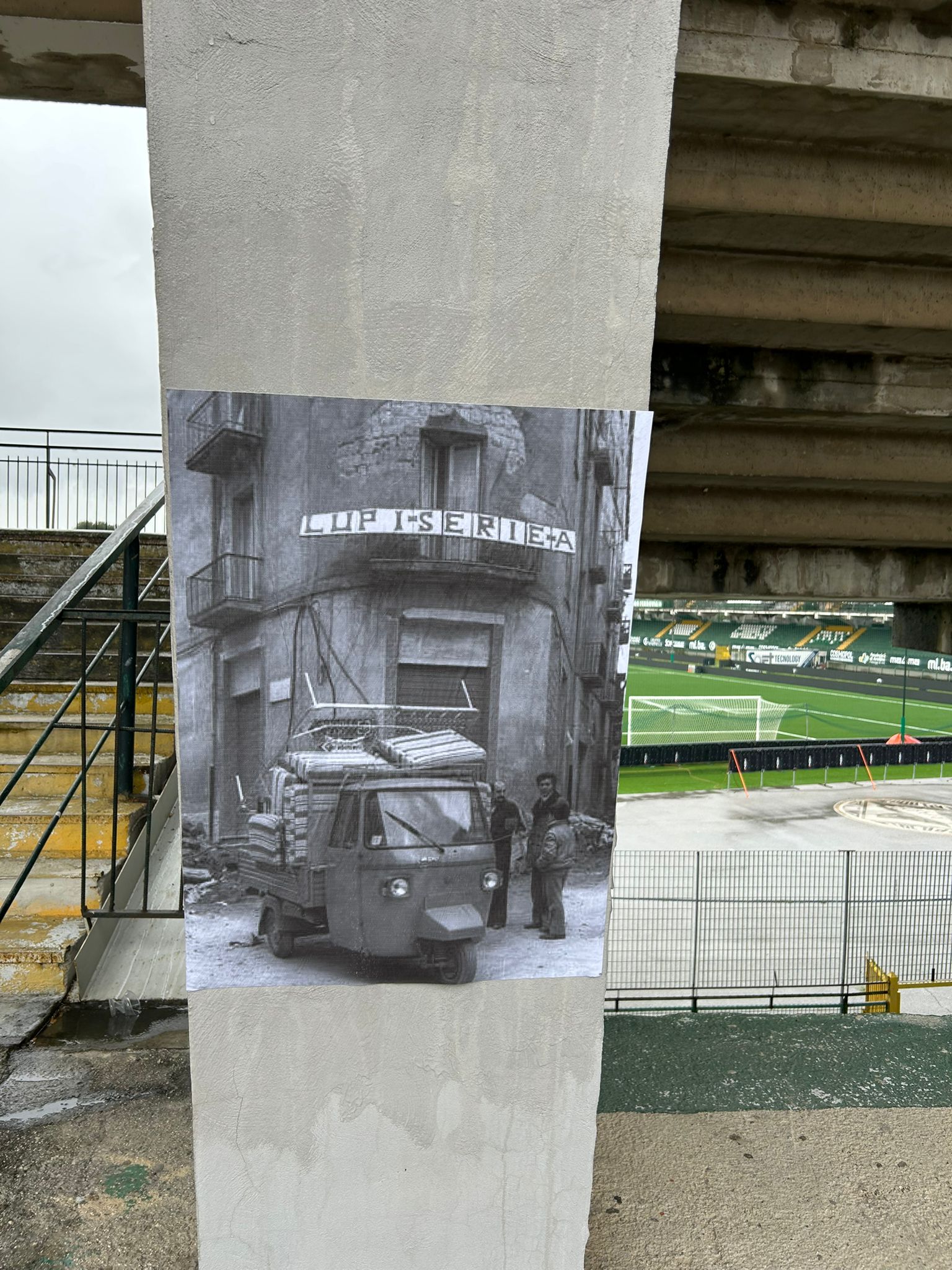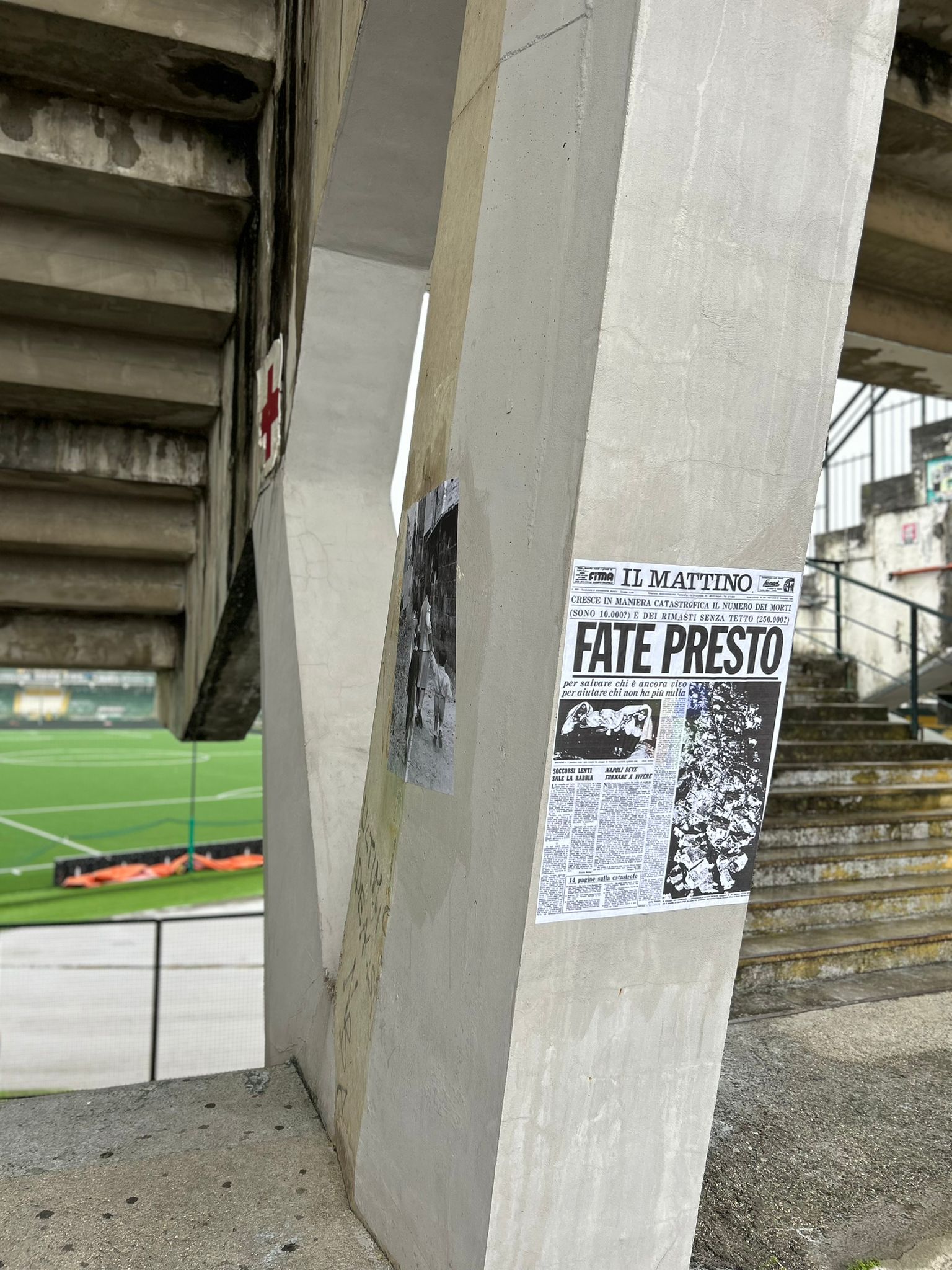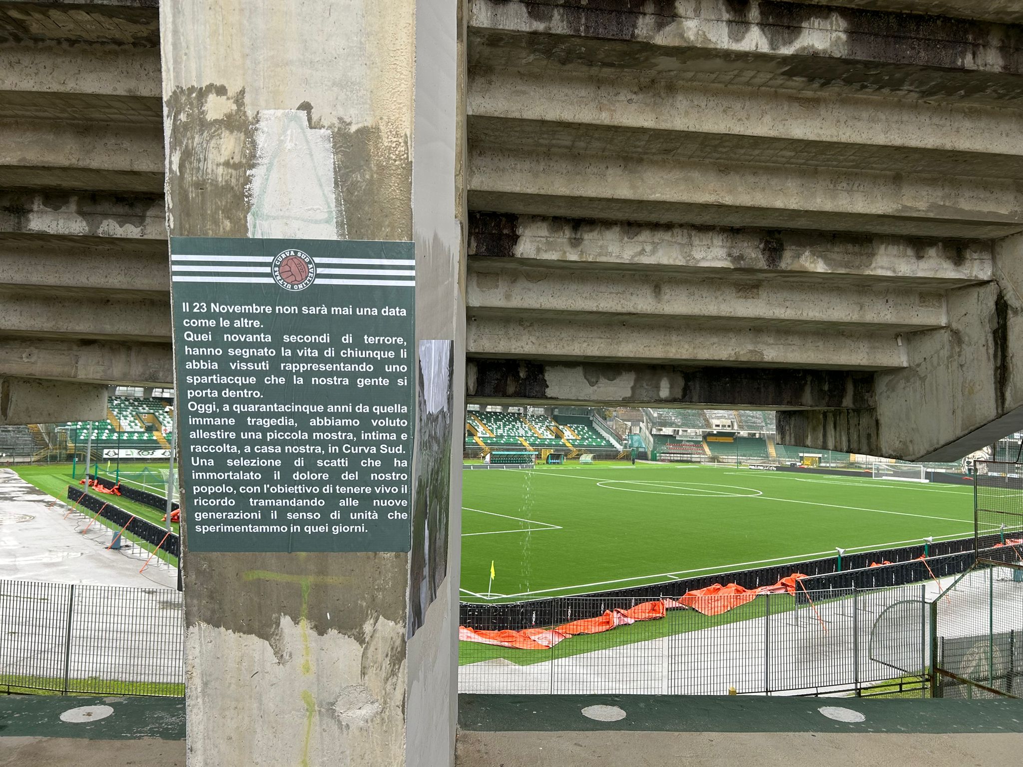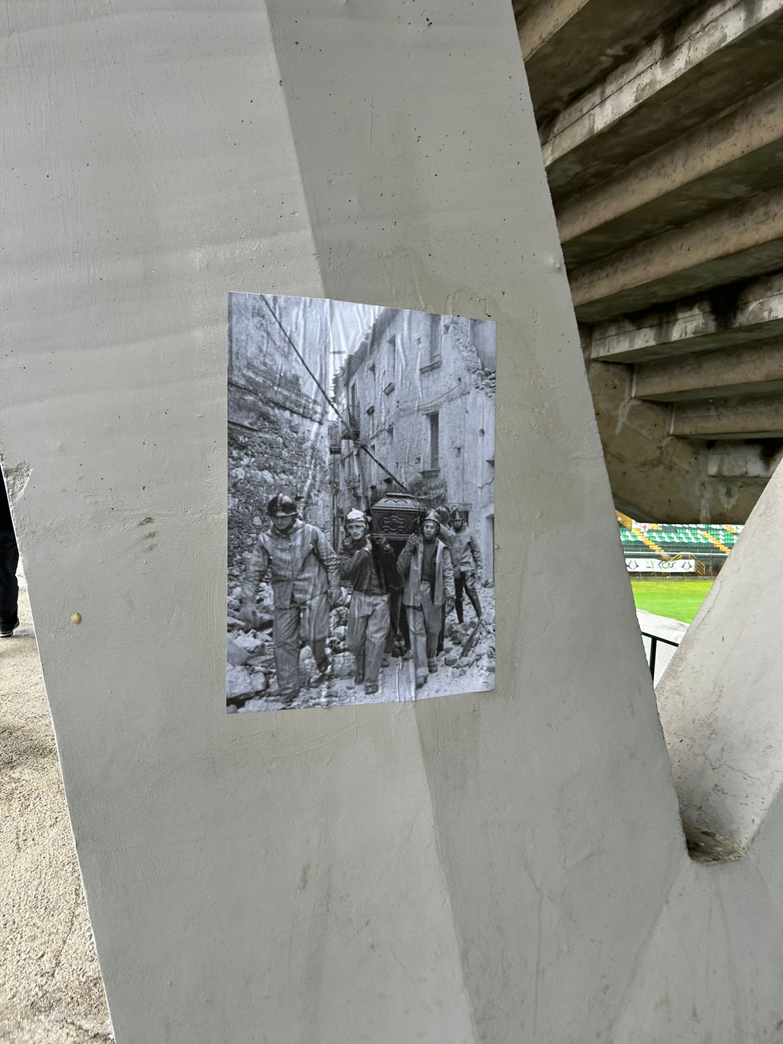 Avellino, foto vicino ai pilastri dello stadio in Curva per ricordare il terremoto dell’80