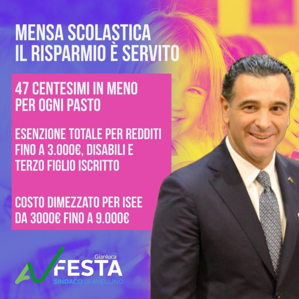 Dal prossimo 8 gennaio il costo della mensa scolastica sarà più basso per tutti, ad annunciarlo il sindaco di Avellino, Gianluca Festa.