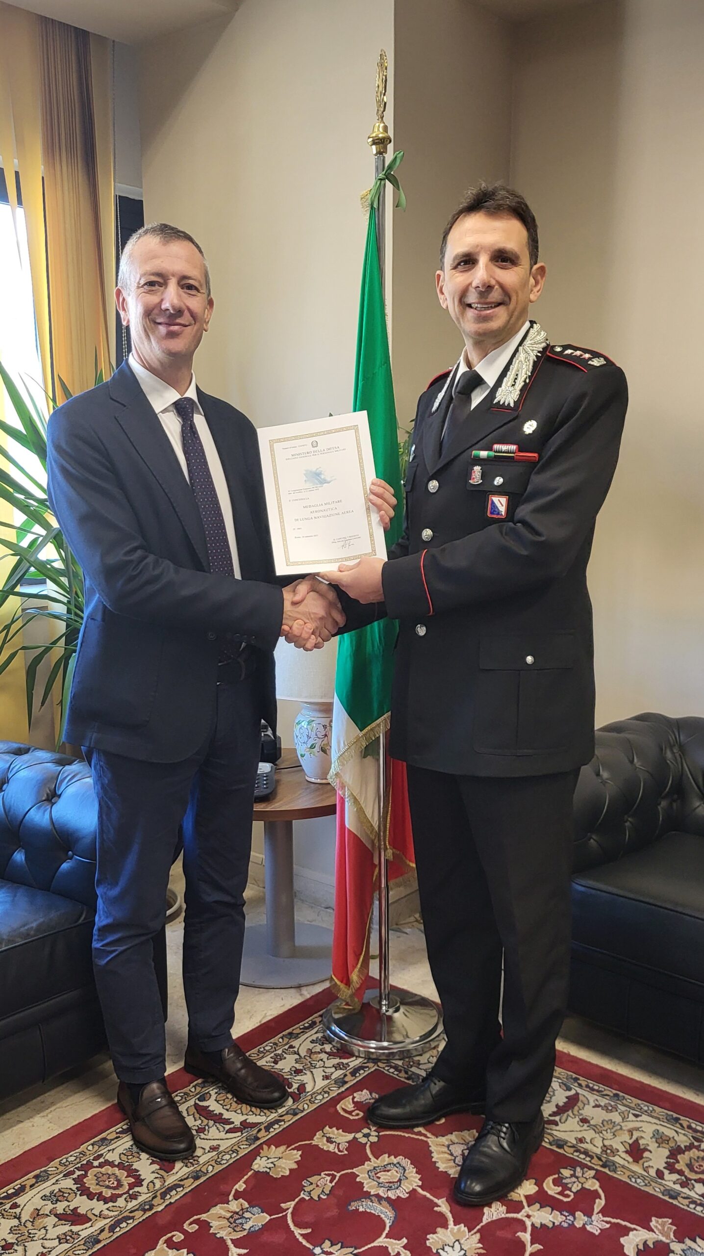 • Luogotenente Francesco Petruzzo, addetto alla Sezione di Polizia Giudiziaria presso la Procura di Avellino, è stata concessa la medaglia militare aeronautica di lunga navigazione aerea.