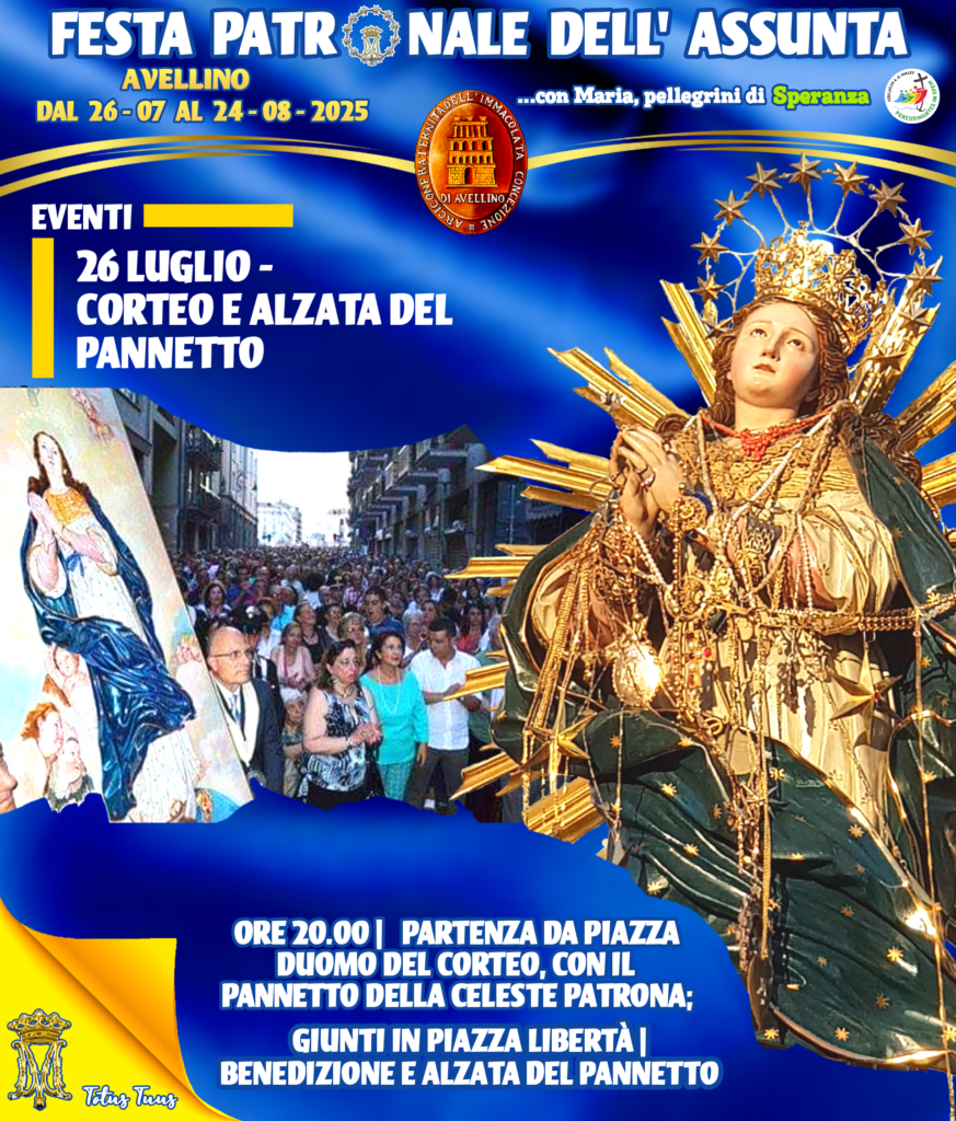 Non un semplice evento da calendario, non un semplice corteo. L’ Alzata del Pannetto della Madonna, che si svolge nel giorno di Sant’Anna, ha un profondo e radicato significato, spirituale e culturale: è un vero e proprio atto d’amore, di appartenenza e di affidamento che da più di 300 anni gli avellinesi rivolgono alla Mamma Celeste, un popolo che mostra con orgoglio le proprie radici, espressione della “Filiale devozione”, per annunciare con gioia l’inizio della festa Patronale di Avellino.