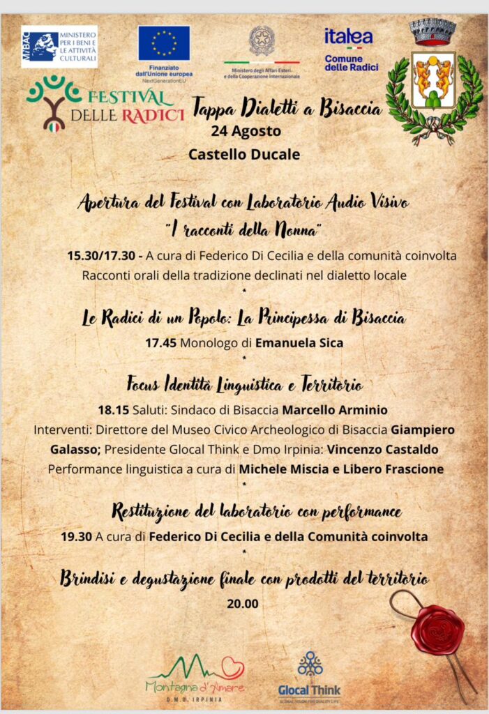 Il meraviglioso Castello Ducale di Bisaccia ospiterà, il 24 agosto, una tappa del Festival delle Radici dedicata alla Celebrazione delle Radici Linguistiche ossia il Dialetto.