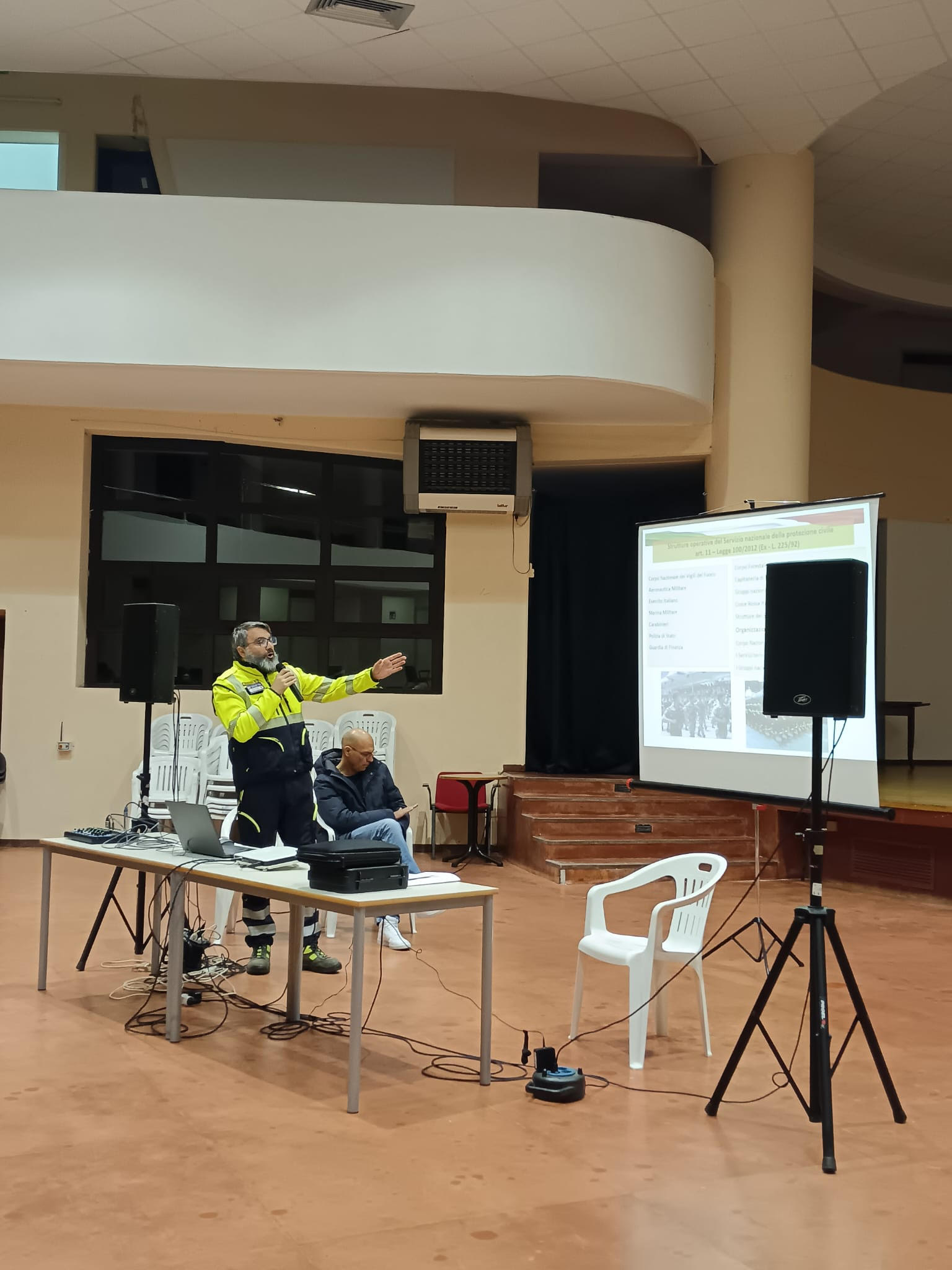 La serata è continuata con una lezione sui principi base del funzionamento della Protezione Civile a cura dell’architetto Giovanni Maggino, Coordinatore del Gruppo Comunale Volontari della Protezione Civile di Bisaccia. L’intervento si è focalizzato molto sull’illustrazione del sistema di Protezione Civile, con un focus particolare sul ruolo che ha il Comune e i suoi cittadini in caso di emergenza.