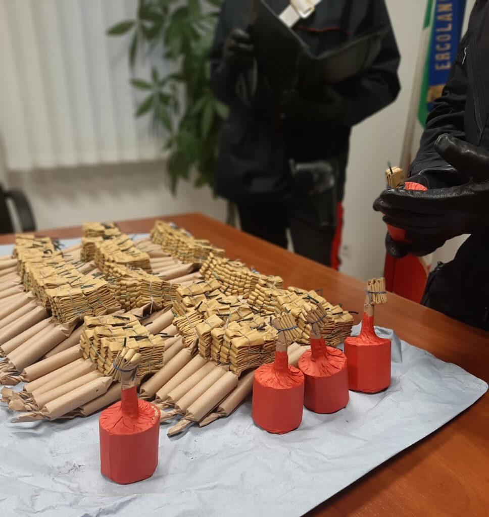 Durante una perquisizione domiciliare i militari hanno rinvenuto e sequestrato 77 “rendini”, ordigni esplosivi improvvisati non convenzionali, 4 “cipolle”, artifizi assimilabili alle bombe carta e 161 “Lupo 26”.