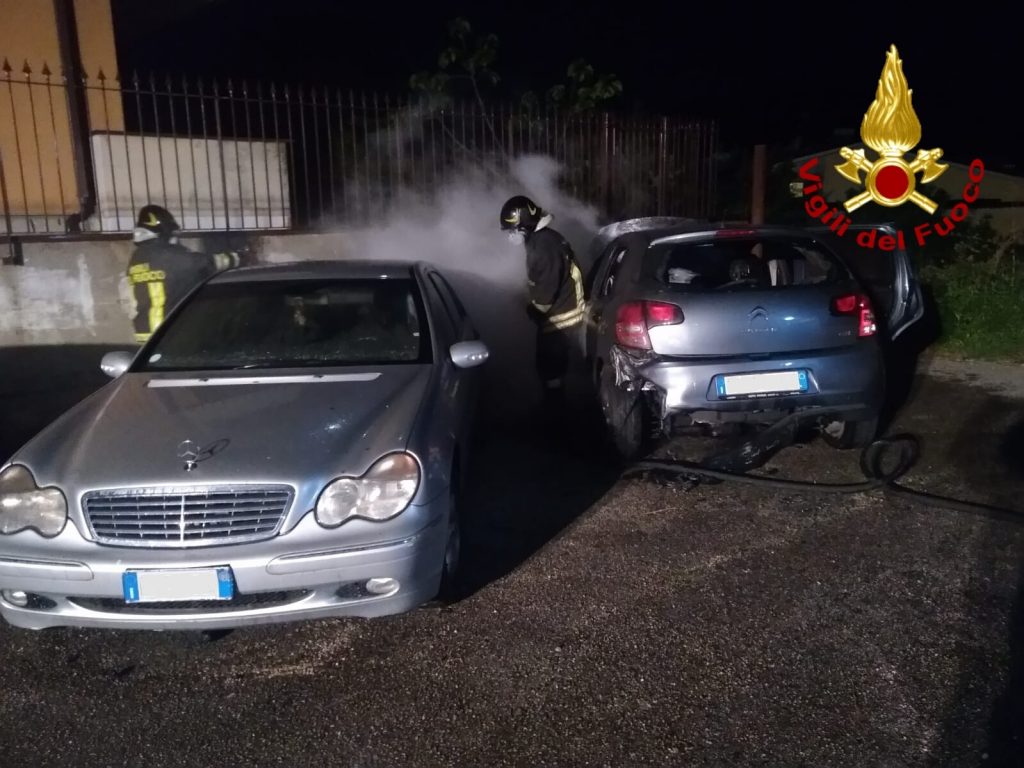 Le fiamme sarebbero partite dal vano motore di una Citroen C3 e hanno poi interessato anche una Mercedes parcheggiata nelle vicinanze.