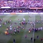 E’ finita la gara tra Benevento e Lecce, partita che determina l’approdo in Serie B dei giallorossi dopo 87 anni di storia. Invasione di campo liberatoria per i supporters sanniti che esultano grazie ad un 3-0 che suggella una grande stagione dopo anni di delusioni e di sconfitte all’ultimo sussulto.