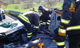 Questa mattina, le squadre dei Vigili del Fuoco dei distaccamenti di Bisaccia e di Lioni, sono intervenute nel territorio del comune di Calitri, in contrada Trascine, sulla strada Statale 401, al Km. 25,800, per un grave incidente stradale. Due i veicoli coinvolti, un Autoarticolato che trasportava cemento in polvere, per cause ancora in corso di accertamento, si è ribaltato, schiacciando una Volkswagen Golf in transito, con alla guida un uomo di anni 57, originario di Pescopagano, in provincia di Potenza. Purtroppo nel violento impatto, l’uomo ha perso la vita. Dopo i rilievi di rito da parte degli organi competenti, la salma è stata trasportata presso l’ospedale di Sant’Angelo dei Lombardi. Per il recupero del pesante automezzo, si è reso necessario l’intervento di due ‘autogrù; una dei Vigili del Fuoco, proveniente dalla sede centrale di Avellino, e l’altra di una ditta privata. Le operazioni di recupero, visto il pesante carico che trasportava l’autoarticolato, sono durate circa otto ore.