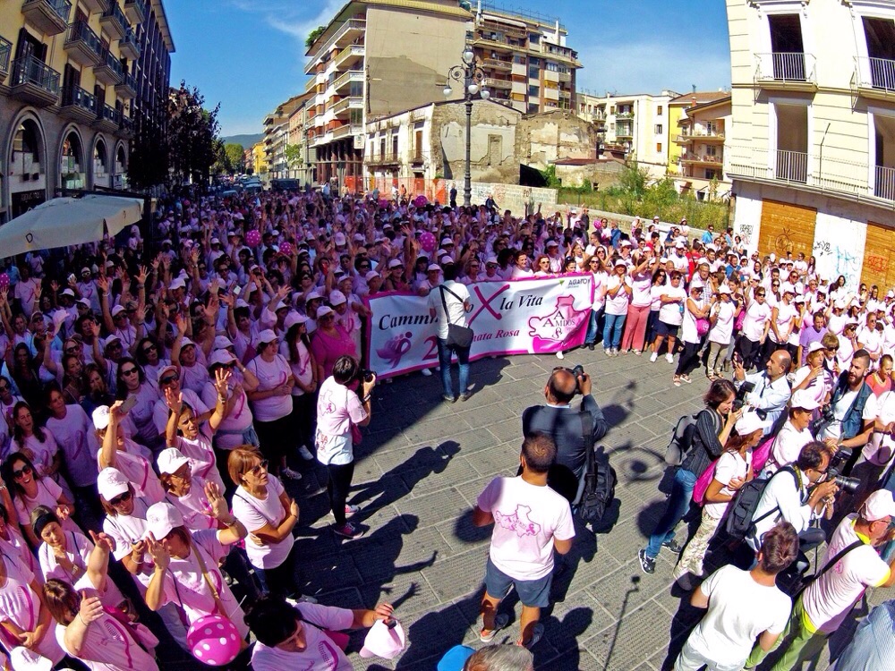 Un fiume di solidarietà che ha visto sfilare, per la Seconda Camminata Rosa organizzata dalle Amdos e Amos Irpine, più di 1500 persone che hanno marciato e ballato fino al Duomo di Avellino dove si è svolta la Santa Messa.