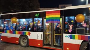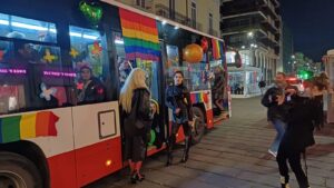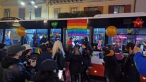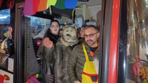 AVELLINO- L’allestimento e la partenza da Piazza Libertà, attraversando il Corso fino all’Eliseo. E’ il Free Bus della Candelora, nato dall’eredita’ del Trans Bus. Un momento di musica, performances e la partecipazione di Vinyl Gianpy dj set. Un’altra tappa verso il due febbraio che coinvolge Avellino e Mercogliano. A lavorare per allestire ed organizzare il Free Bus una rete di associazioni. A partire da Avionica, Caos, I-Ken, PGR, Movimento per la Candelora, Arci Avellino. Donata Ferrante di I-Ken ha ricordato come storicamente “il Trans bus aveva il compito di annunciare tutti gli eventi della Candelora, che quest’anno sono molteplici e coinvolgono più comuni. Pubblicizza tutto quello che abbiamo fatto adesso e faremo fino a domenica, quando tutti insieme saliremo da Mamma Schiavona. In questo momento storico, quello in cui le persone transessuali e omosessuali al mondo subiscono un attacco diretto, sentirci uniti come avviene in questi momenti e con queste iniziative, ci aiuta e ci fa sentire difesi”. Felice Caputo di Kaos, ha voluto rimarcare come questa sera sia emerso: “un mondo colorato, coinvolgendo anche i più giovani, attraverso un’iniziativa che nasce dalle ceneri del Transbus. Abbiamo provato a fare una sintesi tra passato e presente. Pensiamo che nel chiaroscuro i diritti vengano cancellati mentre questa città ha tanta voglia di esprimersi. Di qui l’attenzione rivolta anche alla riscoperta delle tradizioni come Terrafuoco e l’omaggio a Mamma Schiavona. E’ solo attraverso queste azioni come queste che diventiamo comunità nel segno di temi che riguardano tutti”. Massimo Saveriano di “Per Grazia ricevuta” indossa i panni di un lupo. Un lupo che si carica di una valenza duplice, richiamando non solo l’animale simbolo dell’Irpinia. Spiega come “E’ un onore per me “rappresentare la Lupa di Serino. E’ più facile oggi essere gay, mentre lo era ancora di più venti anni fa. Questo transbus è dedicato anche a quelli che sono stati i pionieri in questa battaglia”. Andrea Cresta di Avionica sottolinea come “Questa manifestazione si carica di un valore forte, è il segno che non siamo sordi, che i giovani ci sono e vogliono far sentire la loro voce. In un momento in cui i diritti sono messi in discussione, dobbiamo essere compatti. Il nostro spirito è rivolto a Mamma Schiavona che accoglie davvero tutti. Dobbiamo ringraziare lei per questo momento di unità”