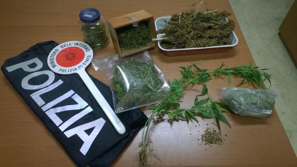 I poliziotti quindi hanno ritenuto opportuno estendere la perquisizione a tutta l’abitazione. Ivi all’interno di un piccolo vano, veniva rinvenuto un contenitore in vetro, un cofanetto di legno e una busta di cellophane trasparente, contenenti tutti un sostanzioso quantitativo di marijuana, con accanto un cutter ed un rotolo di scotch.