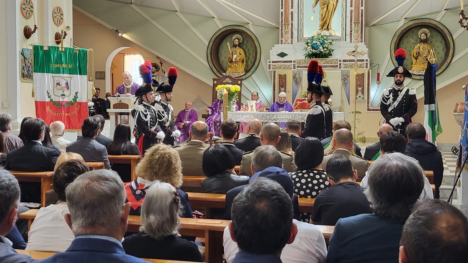 Nel suo intervento, il Generale La Gala ha ricordato la figura del Maresciallo Perrone, soffermandosi su un episodio particolarmente significativo: al passaggio del feretro, gli anziani del paese si sono disposti ordinatamente lungo il percorso, mettendosi sull’attenti e rendendo omaggio con il saluto militare. Un gesto semplice, ma profondamente carico di rispetto e riconoscenza.