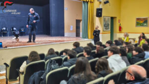 Dopo l’introduzione del Dirigente Scolastico e dei Sindaci di Sturno e di Frigento, il Comandante della Compagnia e quello della Stazione hanno illustrato ai curiosi discenti delle scuole della Valle Ufita i tanti pericoli che possono nascondersi dietro un uso poco consapevole dello strumento informatico. Attraverso una narrazione semplice e di pronta intuizione, si è discusso di casi concreti dove i giovani ed appassionati scolari hanno imparato quali e quanti rischi potrebbero incontrare mentre navigano in internet, e come difendersi. Prima di concludere l’incontro, gli alunni hanno ricevuto una gradita sorpresa, l’incontro con il “Carabiniere” Debby, un pastore tedesco antidroga in forza al Nucleo Cinofili dei Carabinieri di Sarno. E’ stata questa l’occasione per mettere in guardia i ragazzi circa i pericoli dell’uso di sostanze stupefacenti.