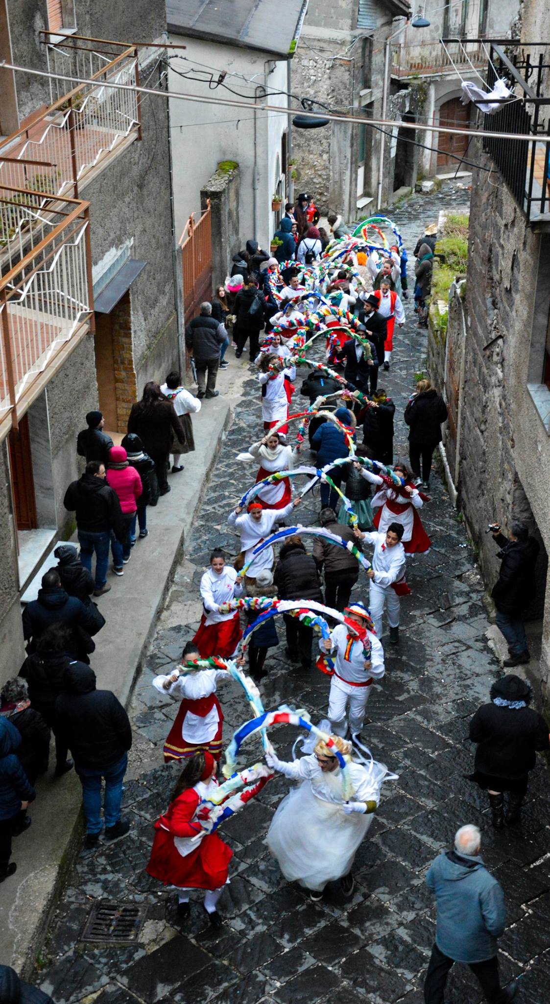 Alle 19 il corteo tornerà in Piazza Municipio per mettere in scena le tradizionali rappresentazioni e balli tipici del Carnevale.