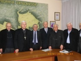 Senza il sostegno di tali valori, ha osservato il Vescovo ( nella foto con da six.: Don Gerardo Capaldo, Pino Blasi, Giuseppe Petrucciani, che è stato uno dei soci fondatori dell’ucsi provinciale , Don Francesco Petrone e Tonino Battista ), sarà sempre più difficile garantire la sicurezza, lo sviluppo economico, la dignità e la civiltà della nostra terra. Un impegno che non è facile e che, come ha rilevato Gerardo Salvatore, presidente della Consulta diocesane delle aggregazioni laicali, esige l’unione di tutte le forze possibili, pur nel rispetto delle diverse strutture associative e colorazioni politiche. Particolarmente gradita la partecipazione di Elena Iannaccone, presidente del Movimento irpino per il bene comune; dell’avv. Tonino Battista, presidente provinciale del Movimento cristiano lavoratori; di Giuseppe Caputo, presidente di “Irpinia insieme”, e del caro don Francesco Petrone, che da ben 45 anni dirige “Il Campanile” di Solofra ,con i collaboratori Michele De Piano ed Aurelio Petrone ). Non tutti forse, ha precisato don Francesco, si rendono conto della pazienza richiesta da un simile lavoro. Per cui a maggior ragione dovremmo apprezzare la proverbiale mitezza del santo vescovo di Ginevra anche nei confronti di avversari accecati dal fanatismo. Significativa in questo senso la collaborazione di Luigi Ferrara, presidente del Movimento internazionale per la pace “Pax Christi” e del prof. Vincenzo Martone, da molti anni impegnato per la valorizzazione del territorio.