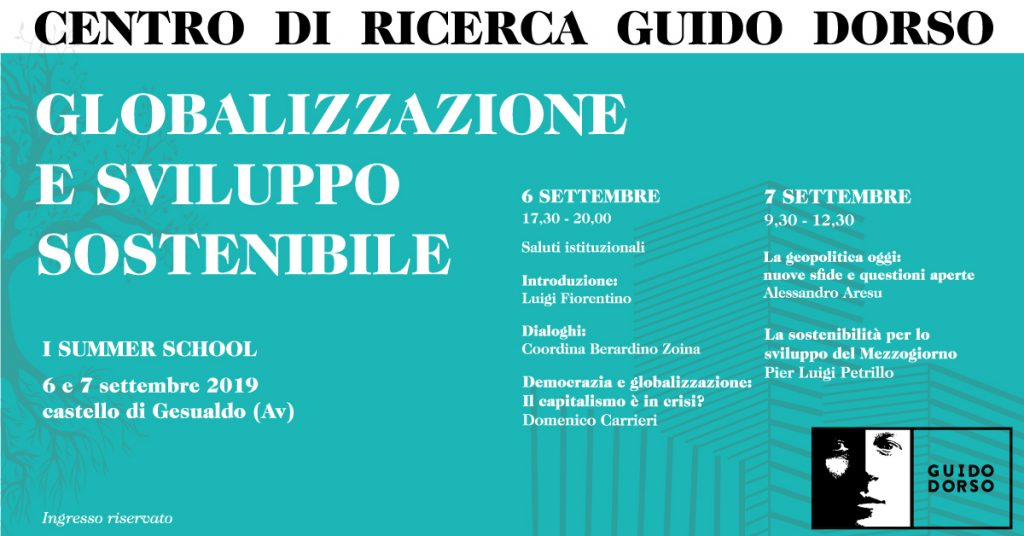 Il 6 e 7 settembre, presso il castello di Gesualdo, al via la prima edizione della Summer school promossa dal Centro di ricerca “Guido Dorso” di Avellino, dal titolo “Globalizzazione e sviluppo sostenibile”.