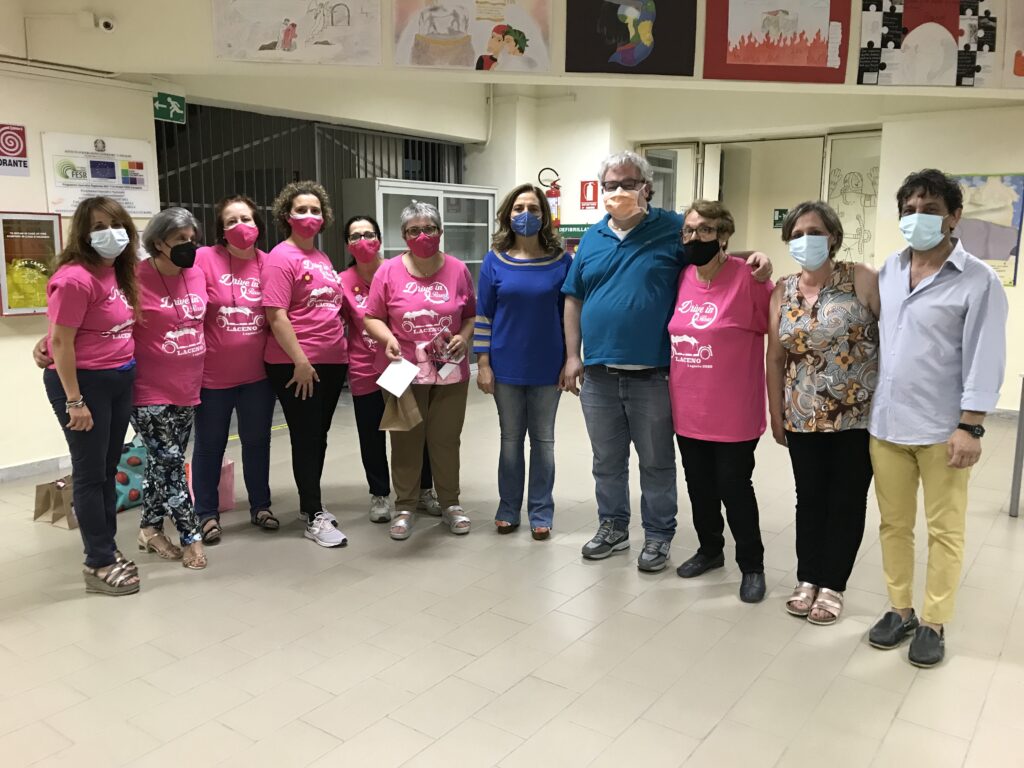 Grazie come sempre all’avv. Caterina Lengua, sindaca del comune di Cervinara, per la grande accoglienza e il legame che ci unisce ormai da anni, e ai collaboratori scolastici Maria Teresa Esposito e Francesco De Simone per averci aiutato nell’organizzazione logistica. In segno di riconoscimento, l’associazione ha donato loro la t-shirt della Settima Camminata Rosa che si terrà domenica 12 settembre, come sempre da Mercogliano ad Avellino. Grazie a tutte le nostre volontarie che donano, instancabilmente, tempo e sorrisi per raggiungere con entusiasmo il nostro principale obiettivo, la prevenzione.